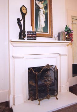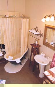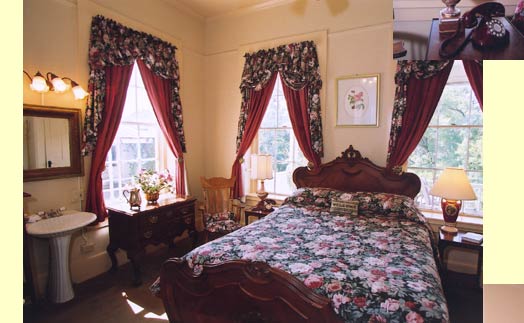 French queen size bed with floral accompaniments. Located in the Inn's foyer, it is the perfect ladies' accommodations with antique claw foot tub in the room.