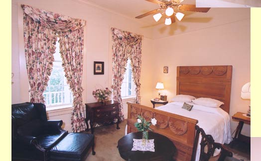 Floral draped windows overlooking Boerne's Main Plaza. Located in the Inn's